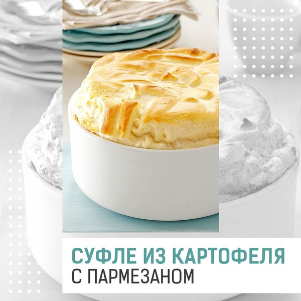 Рецепт от Electrolux: Суфле из картофеля с пармезаном. Ингредиенты: 800 г картофеля 1 большой батат 1 чашка мелко натертого сыра пармезан + еще немного для присыпания суфле 100 г сливочного масла + еще немного для смазывания 6 горшочков 1/2 чашки панировочных сухарей Яйцо 8 нарубленных листов свежего шалфея Соль Черный перец Приготовление: Смазать маслом 6 горшочков и присыпать панировочными сухарями. Очистить картофель и батат, нарезать на маленькие кубики. Сварить кубики картофеля в подсоленной воде до мягкости. Сл… — Читать дальше