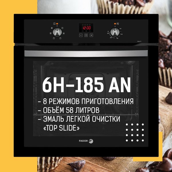 Духовой шкаф FAGOR Модель: 6H-185 AN79E4 Код товара: 200 21 794/0 . 8 режимов приготовления Нержавеющая сталь с покрытием от отпечатков пальцев Объём 58 литров Стандартные регуляторы Дисплей, отображающий время Внутреннее освещение Телескопические направляющие с полным выдвижением противня Эмаль легкой очистки «Top Slide» Отвод вентилируемого пара Класс энергопотребления А 1 х телескопические направляющие с полным выдвижением 1 х эмалированный противень для выпечки 1 х хромированная решетка 2 х съемные направля… — Читать дальше