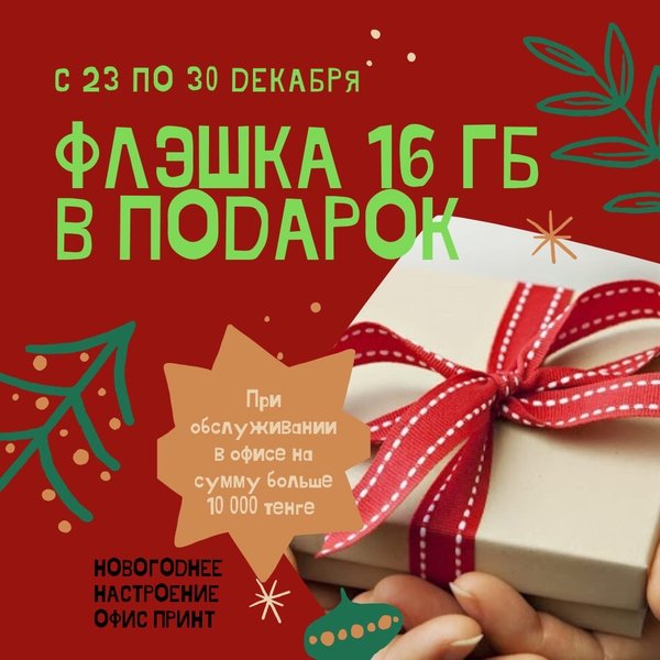 В предверии Нового 2️⃣0️⃣2️⃣1️⃣ года ️ спешим вас порадовать подарками Приходи к нам в сервисный центр получи услуги на сумму свыше 10 000 тенге и получи флэшку на 1️⃣6️⃣ГБ в подарок. *действует только при оплате наличными
