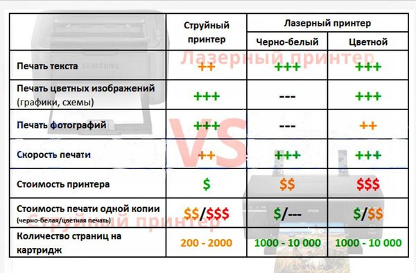 Главное отличие — в технологии печати. Лазерный принтер использует для печати порошок-тонер, а вот струйный принтер печатает с помощью настоящих жидких чернил. Если лазерное устройство может печатать как чёрным, так и цветным. То струйное — всегда цветное. Сравнение по характеристикам смотрите в карусели Минус обозначает, отсутствие характеристики. ++ хорошо справляется с этой задачей. +++ отлично справляется. ⠀ Струйный принтер может напечатать текст, большие фотографии, графические изображения, баннеры и открытки в высоком качестве. И при э… — Читать дальше
