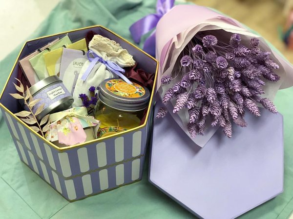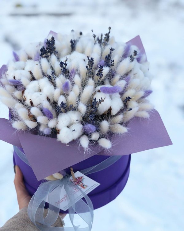 Уютная бархатная Коробочка с хлопком, лавандой и лагурусом