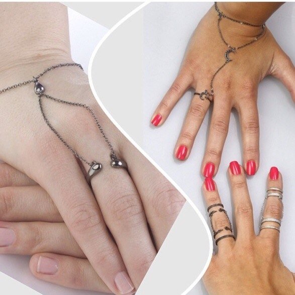 Хит сезона! Модные серебряные кольца соединенные с цепочкой. И в наличии фаланговые кольца со вставками и без.