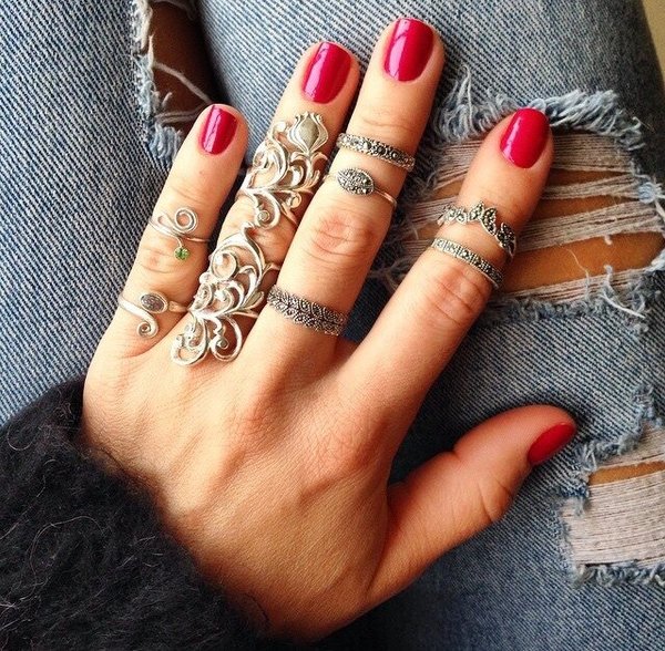 Яркие, летние образы на лето можно сочетать с кольцами на весь в палец в красной, желтой золоте 585 пробы.