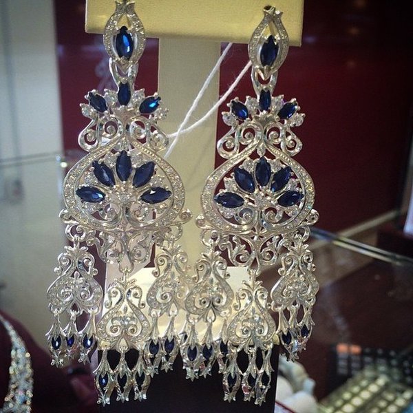 Вечерние длинные серьги усыпанные фианитами и цирконием. На заказ.