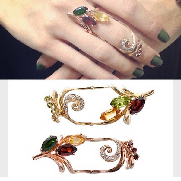 ссуар незабываем и стирает грани между классическим восприятием женственности и современной модой. Кольцо на две фаланги подчеркивают незаурядный вкус его обладательницы, ее утонченность и, что немаловажно, оно подходят к любому наряду. Хорошо сочетается с классическими белыми рубашками мужского кроя, с деловыми костюмами. Металлические кружева и блеск драгоценных камней колец на две фаланги – изысканное дополнение к вечернему платью.
