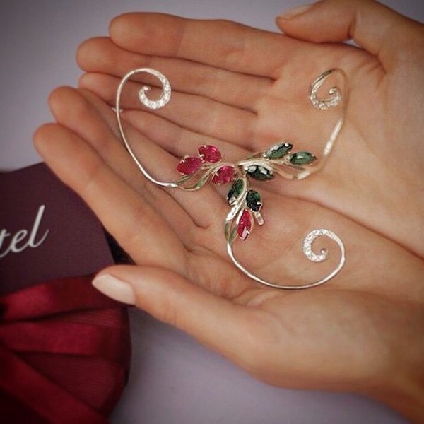 Для нашей невестки невероятно нежные серьги-каффы ручной работы, тонкая авторская работа, серебро 925 пробы, вес: 6,48гр., цена 13100тг. Со скидкой 10% = 11800тг.