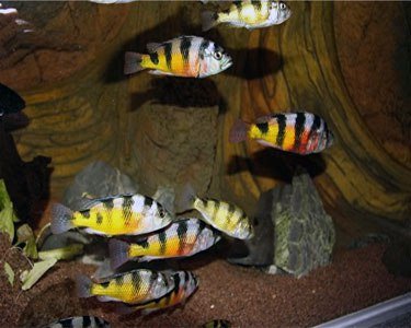 Детки вот таких красавцев продаются у нас в зоомагазине по 300 тг. КОЛИЧЕСТВО ОГРАНИЧЕНО! Спешите! АСТАТОТИЛЯПИЯ БРАУНА (Astatotilapia brownae Greenwood, 1962), рыба семейства цихловых. Обитает в озере Виктория. В природе достигают длины 12 см, в аквариумах меньше — 5—7 см. Окраска самца зеленовато-золотистая с вертикальными темными полосами. Непарные плавники сине-красные. Брюшные плавники черные, грудные — сероватые. На анальном плавнике 7—8 «икряных» пятен. Самки серовато-оливковые, светлые.
