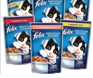 Влажный корм Felix в ассортименте по 100тг.