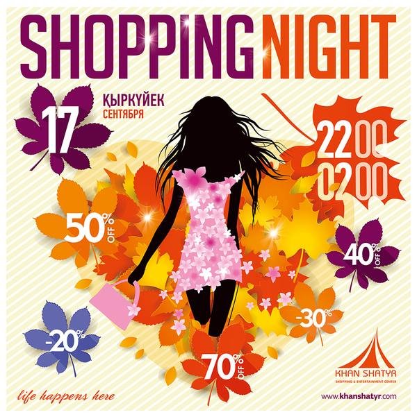 Сегодня — Ночь Скидок в ТРЦ Хан Шатыр, Астана! Все магазины сети Fashion Retail Kazakhstan предоставят скидку 20% НА ВСЕ! Только сегодня 17 сентября с 22:00 до 02:00 в ТРЦ Хан Шатыр: Topshop Topman Gap Monsoon Accessorize Aldo / Aldo Accessories F&F Suiteblanco Flormar Call it SPRING Charles & Keith Jennyfer Collezione Tape-a-loeil Zippy La Senza