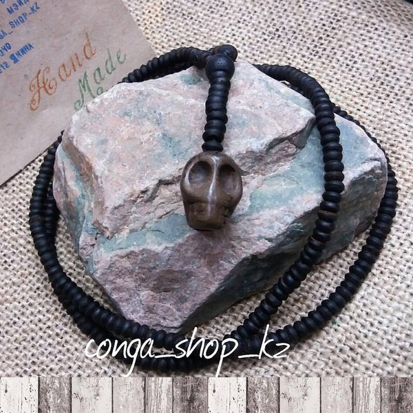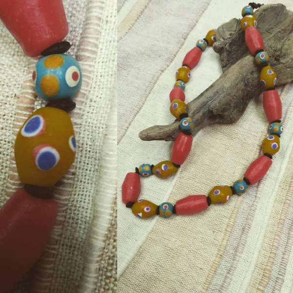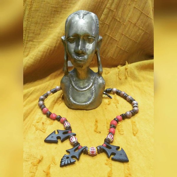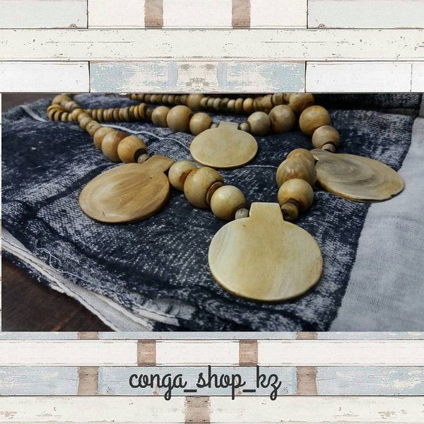 Чокер из африканских бусин и черного дерева. Handmade.