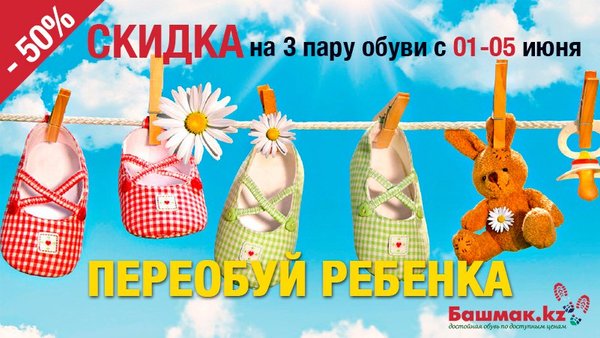 скидка 50% на 3 пару в интернет магазине Bashmak.kz Всех детей переобули?)