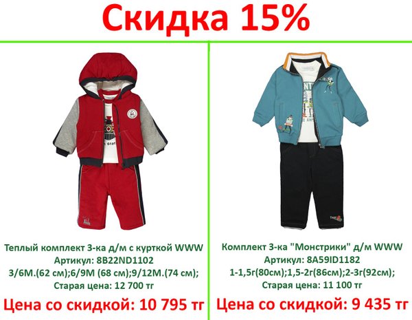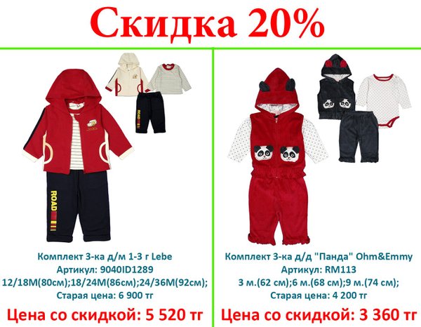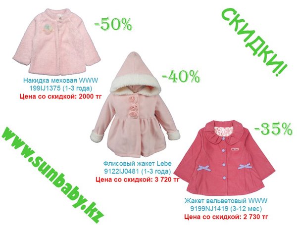 Наши разделы скидок пополнились! Успейте приобрести одежду для деток по приятным ценам! Скидки не суммируются с текущими акциями!