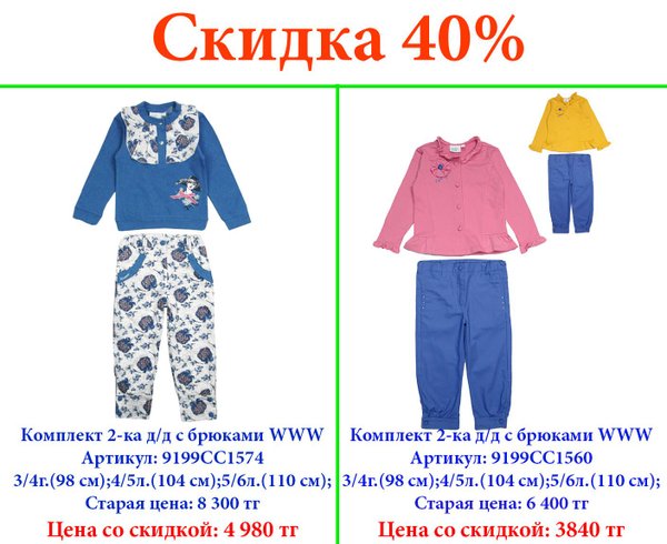 *В разделах наших постоянных скидок: Джинсы и брюки для девочек: Джинсы и брюки для мальчиков: Также напоминаем, что в наших магазинах действует скидка 20% на весь товар и 10% на товары бренда «Мой ангелок»!