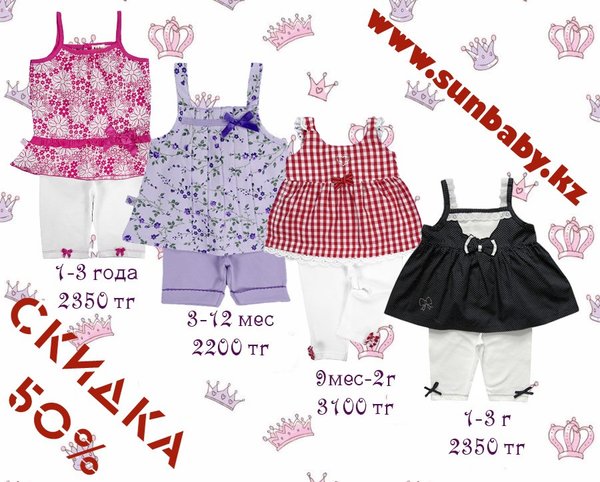 Летние, яркие комплекты для девочек от 3 месяцев до 6 лет! Все модели и размеры: