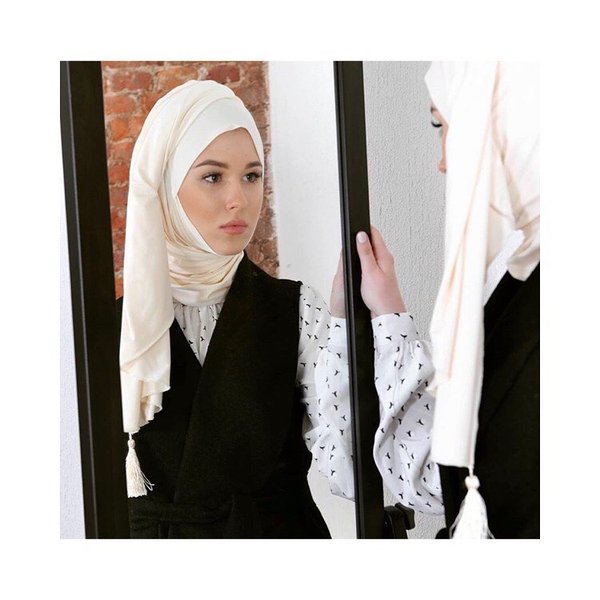 Хиджаб Ready-To-Go с кисточкой 12 000 тенге Капор-чалма, совмещенный с палантином Выполнен из тонкой шелковистой натуральной ткани (шик) Легко и быстро драпируется Ложится красивыми мягкими складками Капор, благодаря особой специально разработанной конструкции, не прилегает к шее Полностью закрывает волосы, шею Модель капора дает возможность закрыть подбородок Кончик палантина украшен декоративной кисточкой 85% вискоза #