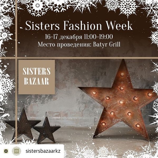 sistersbazaarkz Это нельзя пропустить! Мы приготовили для Вас нечто новое и феерическое ️ 16—17 декабря в Алматы, в рамках фестиваля Sisters Bazaar, состоится мероприятие в новом форме — Sisters Fashion Week Только 20 лучших дизайнеров стильной и скромной одежды, подготовят для Вас лимитированную новую коллекцию, специально для самого холодного времени года ️ Вас ждёт показ от наших лучших дизайнеров, вкусная еда и конечно же тёплая и уютная атмосфера Место проведения: г. Алматы, ул.Абая, 17 Batyr Grill с 11.00—19.00