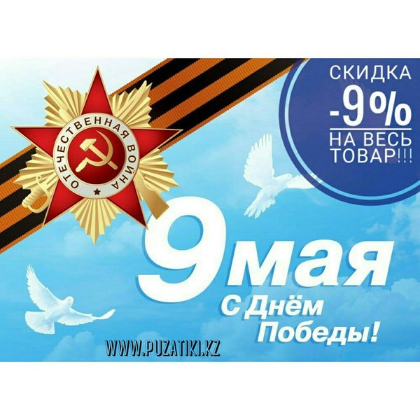 С днем Великой Победы!!! Спасибо дедам за мирное небо над головой!!! . Желаем всем мира, счастья, добра, радости, благополучия Вам и вашим близким!!!! . Только 9 мая мы хотим вас порадовать и подарить скидку -9% на весь ассортимент *скидка не распростроняется на вещи, на которые уже имеется скидка или акция. Спешите преобрести себе наряд по вкусной цене. Всегда рады Вас видеть по адресу ТД УМИТ ул. Гоголя 144/Муратбаева, 1 этаж, бутик «Пузатики Алматы»