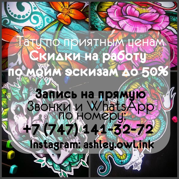Друг нашей студии и отличный тату мастер Ashley Santorski — Забивает отличные татухи и как раз ищет новых клиентов!!! Забронируй время и эскиз — пока это не сделал кто-то другой! Воплощение любой мечты для шедевра на ВАШЕМ теле! Запись на приём по номеру: Звонки и WhatsApp