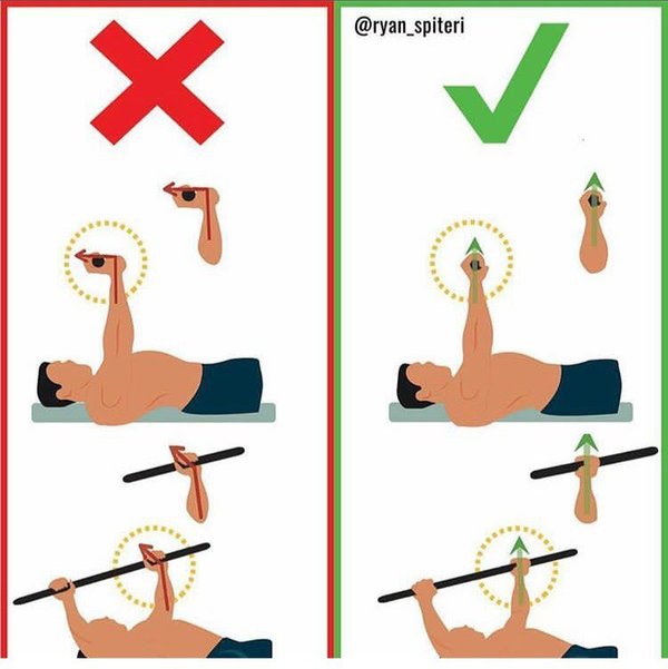 ● Лучшее для грудных мышц — Жим гантелей лежа