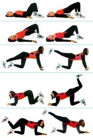 Качаем попу, не вставая с пола На каждое упражнение 2—3 подхода по 15—20 раз