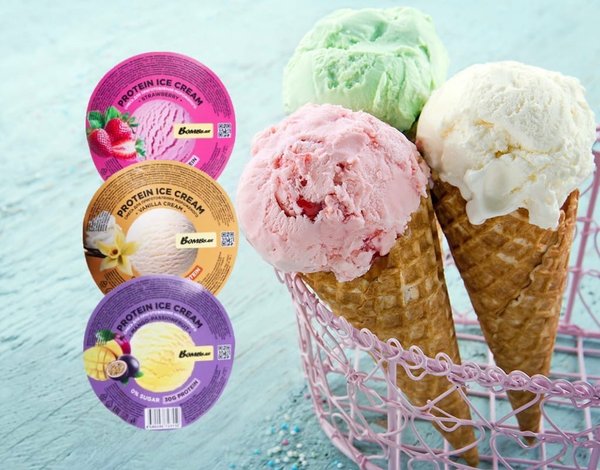 в составе сывороточный и молочный белки. в каждой порции около 20 г протеина
