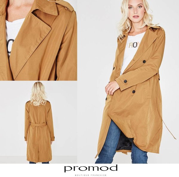 Превосходный тренч цвета кэмел из коллекции Promod, который способен любой образ сделать стильным и утонченным! Тренч прекрасно дополнит образ, как в классическом, так и повседневном стиле, отлично сочетается с разнообразными расцветками одежды, как темных, так и светлых оттенков! Цена: 30 990 KZT Европейский размер: 36—42 Материал: 83% полиэстер, 17% вискоза. Подклад: 100% полиэстер На сайте: