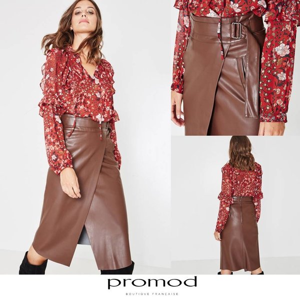 Стильная юбка из кожзама от Promod – отличный выбор для базового гардероба! Можно носить с множеством вариантов рубашек, топов и пуловеров. Прекрасная альтернатива привычным юбкам! Цена: 17 990 KZT Европейский размер: 36—42 Материал: 100% полиэстер. Другая ткань: (покрытие) 100% полиуретан На сайте: