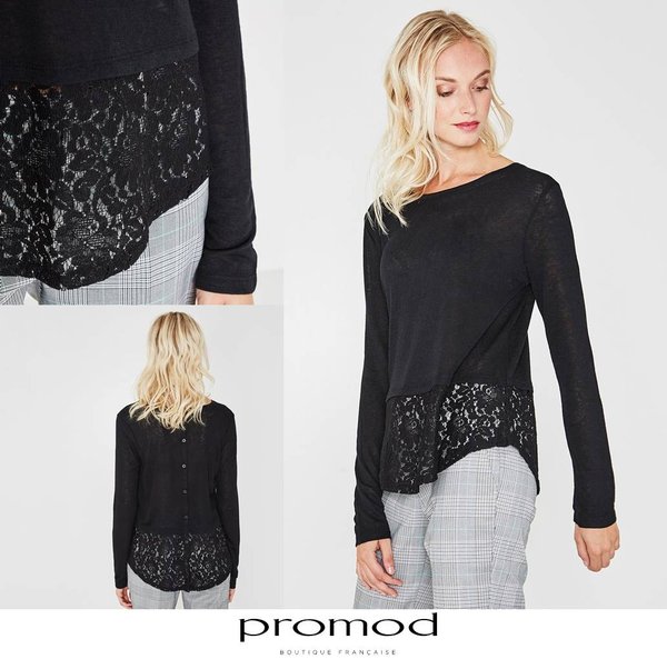 Женственный топ черного цвета, декорированный изящным кружевом из коллекции Promod! Прекрасно сочетается с юбками, джинсами и брюками. Цена: 8 990 KZT Европейский размер: 36—42 Материал: 70% вискоза, 30% полиэстер. Другая ткань: 60% полиамид, 40% хлопок На сайте: