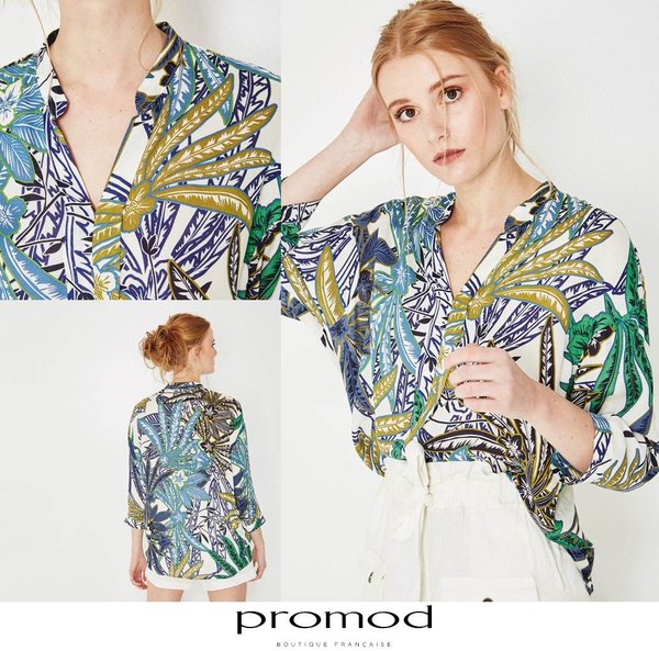 Прекрасная модная блузка с принтом из новой коллекции Promod! Носить такую блузку можно с разнообразными брюками, шортами или юбкой-карандаш. Цена: 11 990 KZT Европейский размер: 34—42 Материал: 100% вискоза На сайте:
