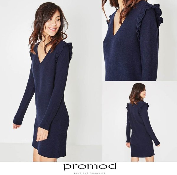 Очаровательное трикотажное платье с оборками из коллекции Promod. Идеальный выбор для работы, свидания или для прогулки с друзьями. Платье можно дополнить яркими аксессуарами, которые прекрасно завершат образ. Цена: 17 990 KZT Европейский размер: 36—42 Материал: 60% нейлон, 35% полиэстер, 5% шерсть На сайте:
