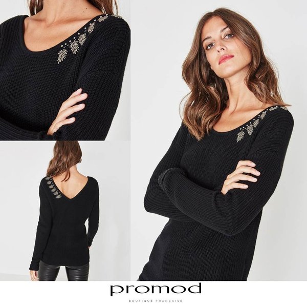 Прекрасный пуловер, выполненный в оригинальном стиле от Promod! Модель черного цвета декорирована вышивкой из бисера и украшена V-образным вырезом на спине. Отлично сочетается в паре с брюками и юбками! Цена: 19 990 KZT Европейский размер: 36—42 Материал: 50% акрил, 50% хлопок На сайте: