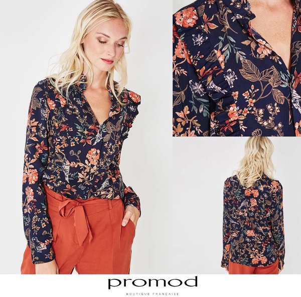 Восхитительная рубашка с контрастным модным флористическим принтом и оборками от Promod! Такая рубашка будет одной из самых любимых вещей в вашем гардеробе! Цена: 11 990 KZT Европейский размер: 34—42 Материал: 100% вискоза На сайте: