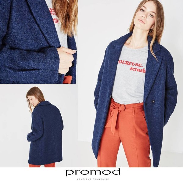 Превосходное пальто, выполненное в мужском стиле из коллекции Promod! С этим пальто можно создавать как утонченные женственные, так и смелые молодежные образы, комбинируя с платьями, кожаными брюками или короткими юбками! Цена: 30 990 KZT Европейский размер: 36—44 Материал: 50% шерсть, 50% полиэстер. Подклад: 100% полиэстер На сайте:
