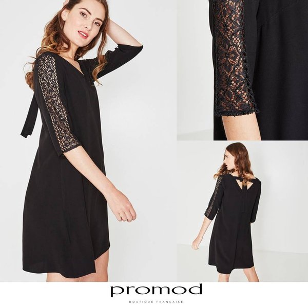 Лаконичное и в то же время женственное платье черного цвета, украшенное кружевом на рукавах из коллекции Promod! Отличное решение для вечернего мероприятия — в сочетании с лодочками и небольшим клатчем. Цена: 17 990 KZT Европейский размер: 36—42 Материал: 100% вискоза. Другая ткань: 65% вискоза, 23% нейлон, 12% хлопок На сайте: