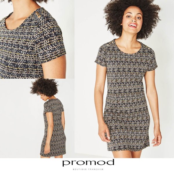 Прямое платье – обязательный предмет в гардеробе каждой женщины. Платье прямого кроя из коллекции Promod очень комфортное, универсальное и удобное! Цена: 12 990 KZT Европейский размер: 36—42 Материал: 75% акрил, 11% полиэстер, 6% хлопок, 3% металлические волокна, 3% полиамид, 2% эластан На сайте: