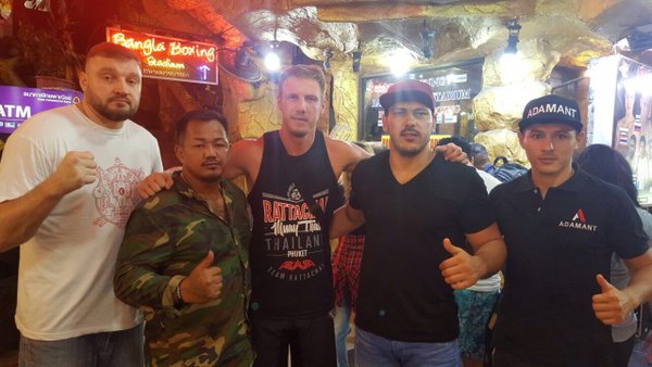 Бангкок 10 февраля 2017 год. Даулет Отврбаев и Одни из лучших бойцов муай тая.