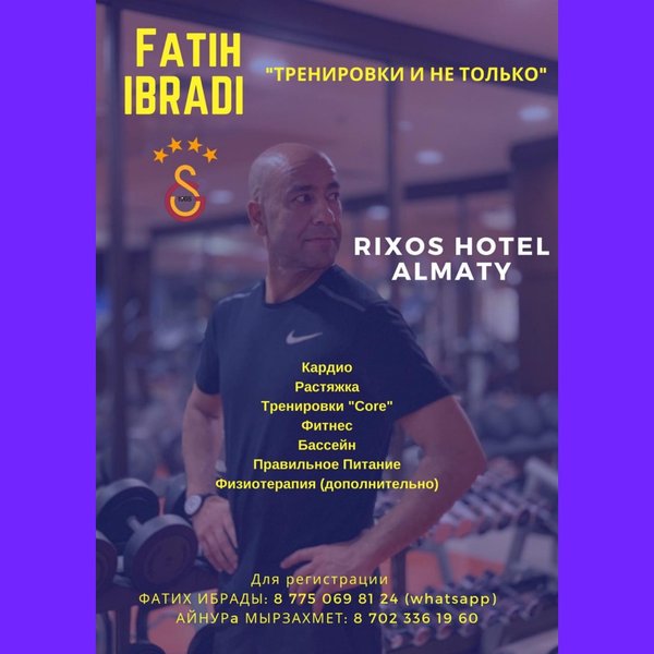 ️«Тренировки и не только» с Фатих Ибрады! ⠀ Кардио Растяжка Тренировки «Core» Фитнес Бассейн Правильное Питание Физиотерапия (Дополнительно) ⠀ Место: Rixos Hotel Almaty Для Регистрации: Фатих Ибрады (whatsapp) Айнура Мырзахмет