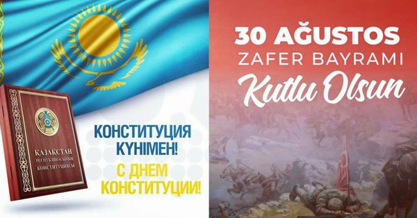 Поздравляем с Днём Конституции Республики Казахстан, а также с Днём Победы в Турции!