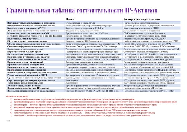 ллектуальных прав на рынках БРИКС, ЕАЭС, РФ, ШОС» и учебные программы к нему (); к сожалению — знания, понимание, навыки приходят не сразу. Обсуждения включают: профилактику рисков увлечения патентным и пренебрежения авторским правом, имитации интеллектуальных прав для налогообложения, медиации, арбитража, позитивной репутации и фиктивности, ничтожности сделок с IP-Активами; правовые нормы авторского, смежного права, ноу-хау и коммерциализацию интеллектуальных прав; Стандарты обычаев делового оборота IP-Активов БРИКС и Директивы Платформы инновационного развития БРИКС (IPBC); паспортизацию и менеджмент IP-Активов, нематериальных активов, секретов производства для коммерческой концессии; международную регистрацию СТО/ТУ инновационных предприятий для рынков БРИКС, ЕАЭС, РФ, ШОС; добавленную стоимость инноваций, конкурентных преимуществ и инвестиционную привлекательность правообладателя IP-Активов; защиту интеллектуальных прав работников и работодателей профсоюзами; аттестацию инновационных предприятий, медиаторов, наставников практик, экспертов-аудиторов, центров компетенций. Цель обсуждений и практикумов — оптимизация паспортизации IP-Активов и подготока совместно с наставником IPBC необходимой авторам и их правопреемникам, инвесторам и страховщикам, налоговикам и правоохранителям, бухгалтерам и аудиторам, медиаторам и арбитражу право-подтверждающей документацией на IP-Активы в режиме авторского и смежного права, технических решений и технологий, селекционных достижений и коммерческой тайны ноу-хау. Подробности: IPBC.ВКонтакте —; IPBC.Телеграмм —; Консорциум IPM и IPBC —.
