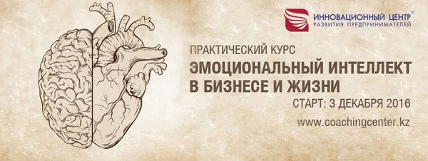 то вызывает недопонимание сторон, удручающие отношения и, в результате, недостижение целей и планов как в семье, так и в бизнесе. Это происходит потому что только 7% людей на земле знают, как управлять своими эмоциями. Обращаю внимание — не как подавлять их, а проявлять эмоции, экологично для себя и окружающих. Навык Эмоционального интеллекта является ключевым, если вы хотите создать здоровую атмосферу дома и в коллективе. Программа “Эмоциональный интеллект в бизнесе и в жизни” формировалась и проходила апгрейд в течение двух с половиной лет. Через 9 потоков курса прошли более 150 предпринимателей и руководителей, и сегодня их жизнь — пример того, насколько развитый навык эмо интеллекта может трансформировать отношения и качество жизни человека. Как ты это можешь сделать уже сейчас? Все просто. В курсе ты получишь практическую информацию, на понятном языке и сможешь сделать интересные творческие упражнения, которые покажут твою текущую ситуацию, и начнут шаг за шагом формировать у тебя навык эмо интеллекта. Программа состоит из 4 практических встреч участников по субботам. Люди не всегда осознают, что новые результаты приходят только за счет новых мыслей и действий. Можно продолжать делать и говорить как привык, снова и снова получая старые результаты. А можно, следуя программе, создать новый навык и начать общаться по-новому, научиться осознавать свои эмоции и управлять ими. Формировать атмосферу общения в любом коллективе и перестать, наконец, зависеть от своих эмоций. Только представь — даже если к тебе приходит раздраженный человек, кто-то делает тебе необъективное замечание или пытается зацепить — а ты остаешься спокойным и невозмутимым. Твои сотрудники больше не раздражают тебя, потому что ты научишься доносить им информацию так, что они сами начнут брать на себя ответственность и предлагать решения. Близкие и родственники больше не смогут вывести тебя из себя, потому что теперь Ты. Управляешь. Своими. Эмоциями. Точка! Никто не способен будет влиять на твое настроение и состояние без твоего согласия. Имя этому навыку — эмоциональный интеллект. Ведущая: Инна Кравченко — профессиональный коуч, предприниматель, основатель “Инновационного Центра Развития Предпринимателей”. Создала особую технологию трансформации жизни для предпринимателей в виде годовой программы, покрывающей развитие личности в шести сферах. ВЫГОДЫ ОТ УЧАСТИЯ В ПРОГРАММЕ “ЭМОЦИОНАЛЬНЫЙ ИНТЕЛЛЕКТ В БИЗНЕСЕ И ЖИЗНИ”: 1. Сможете спокойно реагировать на критику и видеть факты для развития 2. Научитесь управлять своими эмоциями в общения — в жизни и на работе 3. Создадите атмосферу понимания и синергии в коллективе благодаря новым коммуникациям 4. Научитесь понимать, что чувствуете и говорить об этом 5. Научитесь оставаться собой, спокойным, несмотря на стресс или плохое настроение собеседника Место проведения: офис «Инновационного Центра Развития Предпринимателей», ул. Айманова, 65, ниже ул. Жамбыла (ориентир — парк Махатма Ганди), подъезд № 3, офис 107, этаж 14. Старт: 3 декабря. Программа включает 4 встречи по субботам: 3, 10, 17, 24 декабря. Новогодняя акция -40% При оплате до 1 декабря, получи скидку -40% и стоимость участия 150000 тг вместо 256000 тг. Количество мест ограничено: 12 участников. Чтобы принять участие, заполни небольшую форму по ссылке По всем вопросам о ку
