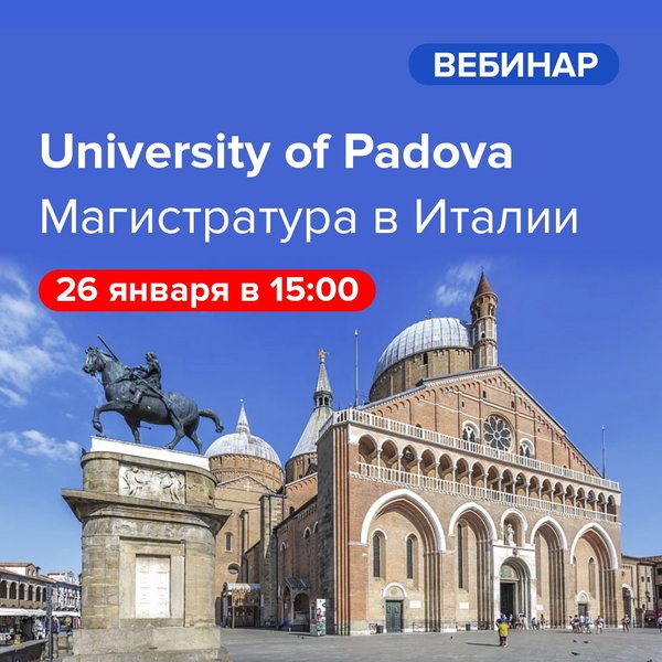 ть обучения + стипендия 8000 EUR в год. • Partial scholarships (full tuition fee-waivers) — стипендия для студентов с высокими академическими достижениями. Программы: бакалавриат и магистратура с обучением на английском языке. Стипендия покрывает полную стоимость обучения + стипендия до 3000 EUR в год. • Scholarships offered by Departments — стипендия для студентов с высокими академическими достижениями. Программы: некоторые направления бакалавриата и магистратуры. Размер стипендий – от 2 400 EUR до 8 000 EUR в год. • Scholarships for the Master’s degree in Scienze storiche — study track 'Mobility studies' – стипендии для талантливых студентов, желающих учиться по этому направлению программы магистратуры. Размер стипендий – от 4500 EUR в год в год. • Galilean School of Higher Education – стипендия для студентов магистратуры на английском языке. Стипендия покрывает авиабилет, жилье, расходы на учебные материалы и стипендия до 5000 EUR в год на остальные расходы. Стоимость обучения в University of Padova без учета стипендий составляет от 2500 EUR в год. Узнайте подробнее о том, как поступить в University of Padova и как можно подать документы на стипендии на вебинаре 26 января в 15:00! Ссылка на регистрацию или напишите нам в Директ!