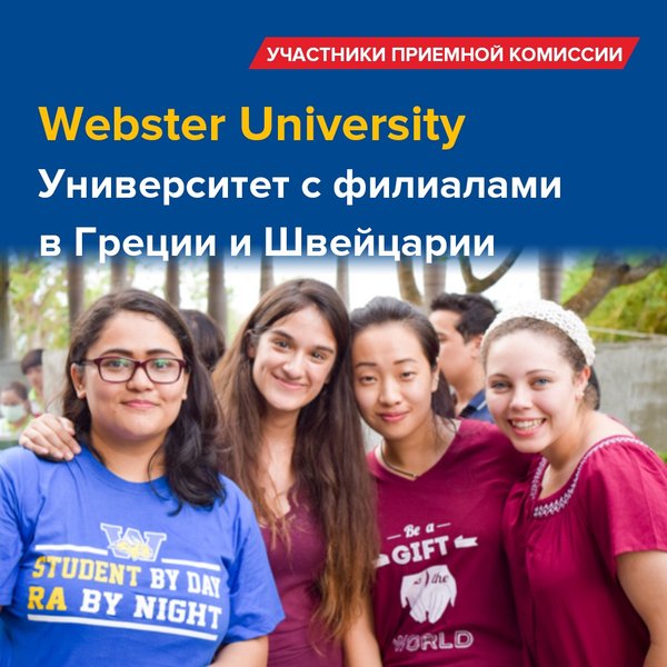 рситетом, в котором студенты обучаются в кампусах в Северной Америке, Европе, Азии и Африке, а также в дистанционном формате. Webster University Geneva — университет с американским обучением в Женеве основан в 1978 году. Обучение ведется на английском языке и проходит в небольших классах. Webster University Athens — университет c аккредитацией Higher Learning Commission (HLC). Студенты Webster Athens получают ту же степень, что и их американские сверстники в США.