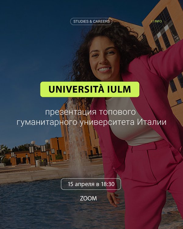 и, которая уже учится в IULM — Ответы на ваши вопросы от представителя университета 15 апреля | 18:30 по Москве Онлайн, участие бесплатное Если вы хотите учиться в Италии, раскрыть свой потенциал в международной среде и жить в самом сердце страны — начните с этого мероприятия. Регистрация по ссылке -