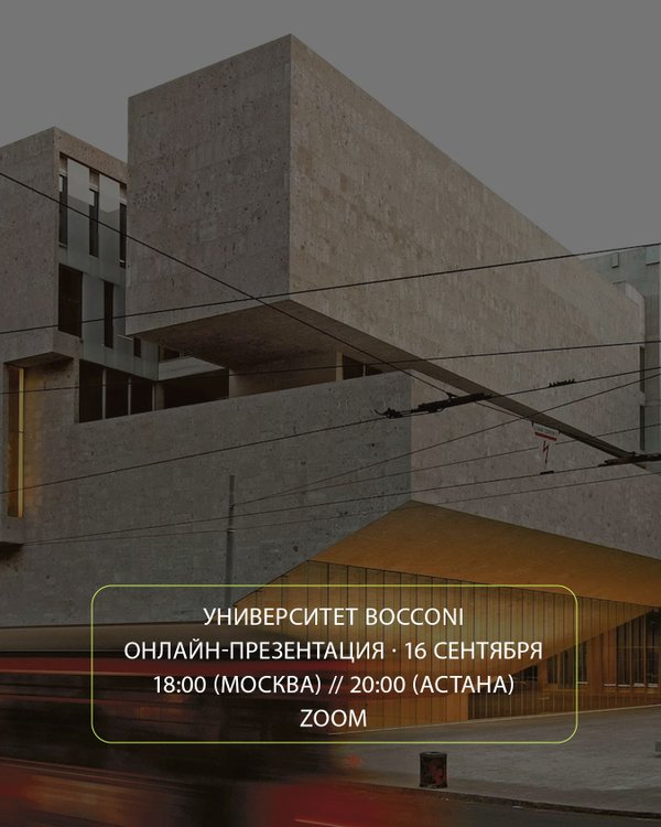 0+ университетов для международных обменов и двойных дипломов 5️⃣120 000+ выпускников по всему миру 6️⃣обучение на английском и итальянском языках 7️⃣тесные связи с индустрией: стажировки и проекты во время учебы Когда: 16 сентября, 18:00 (Москва) // 20:00 (Алматы) Язык: английский На встрече расскажут о программах магистратуры Bocconi, стажировках и карьерных возможностях, а также подключится выпускник из России, который поделится своим опытом учебы и работы в Милане. ℹ️ Регистрация и другие детали мероприятия доступны по ссылке -