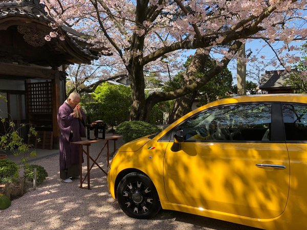 с ками (божество). У храма Якуо-ин стоит огромное скульптурное изображение тэнгу с длинным носом и крыльями на спине. Тэнгу «Небесная собака»— существо из японских поверий. В японских верованиях тэнгу существо; представляется в облике мужчины огромного роста с красным лицом, длинным носом, иногда с крыльями. Тэнгу очень часто носит одежду горного отшельника, он наделён огромной силой. Ежегодно во второе воскресенье марта у подножия горы Такао проходит фестиваль огненного шествия Хиватари.