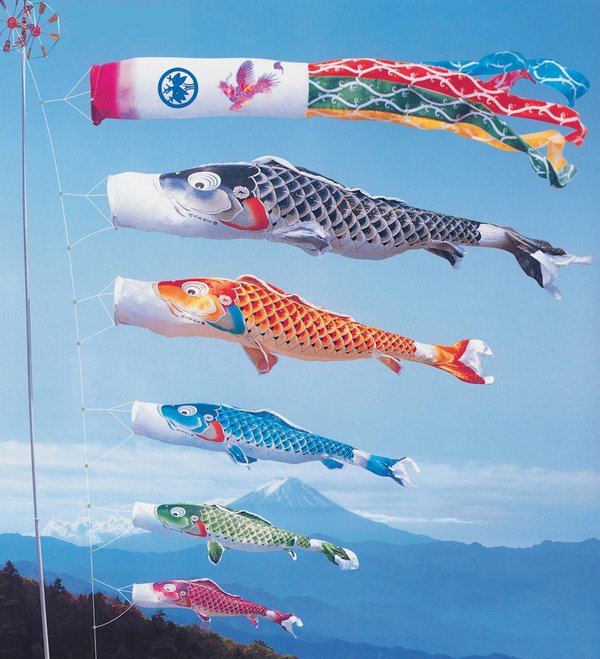 Снаружи дома вывешивают сделанные из ткани полые фигуры карпов кои-нобори, которые раздуваются и полощутся на ветру. Карпы могут взбираться против течения и через водопады и поэтому символизируют пожелания настойчивости и успехов.
