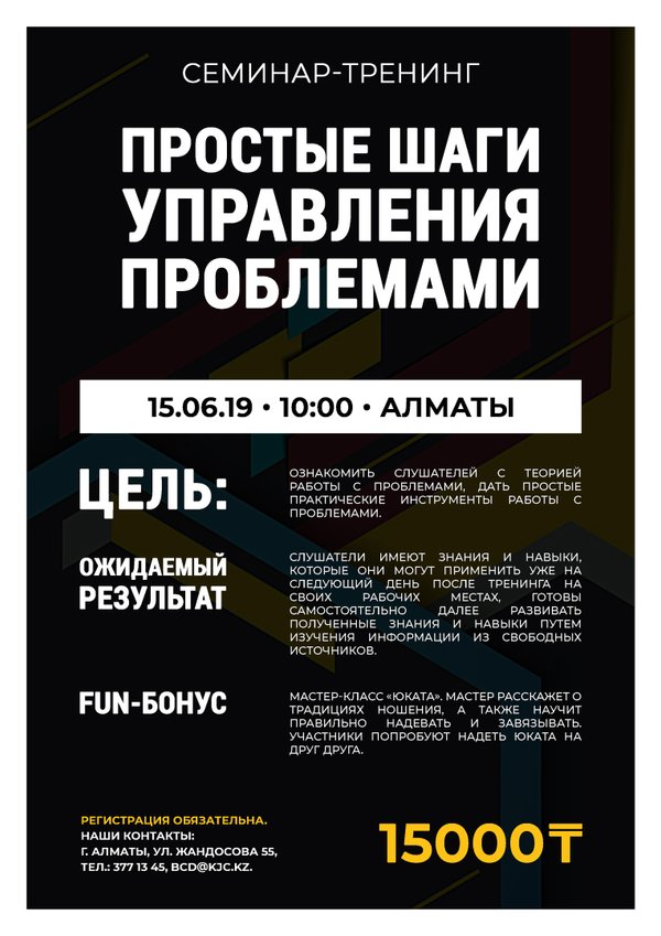 ля – 27 августа (всего 1,5 месяца вместо обычных семестровых, которые длятся 4 месяца). Время занятий: дневное и вечернее, пн-пт. 40000 тн. Для тех, кто записывается сразу на оба курса, предоставляется скидка: 42000 тн вместо 46000 тн! Запись на нашем сайте: