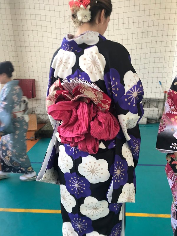 зрослые женщины. Стильное кимоно ручной работы может оцениваться в 10,000 $ и даже больше! Хотя можно приобрести недорогое более простое кимоно, или уже ношеное кимоно. Настоящее дорогое японское традиционное кимоно делается «от и до» вручную, включая трудоемкие процессы ткачества и раскраски. Такое кимоно – и на вид словно «живое», и ткань у него удивительная на ощупь, и это даже уже не просто одежда, а своего рода произведение искусства, своеобразный артефакт – роскошь, а не одежда. Большую часть роскошного вида кимоно добавляет особый пояс - Оби. Это длинный (до 6 метров!) и широкий (30 см, однако он складывается пополам до ширины 15 см) пояс. В древние времена он был довольно непритязательным (у женщин и мужчин – одинаковый), но в наши дни красивый оби – это, по большей части, роскошный женский аксессуар. Существует не менее десяти традиционных способов завязывать узел на женском оби, так что европейские галстучные узлы просто не идут с этим ни в какое сравнение! Любопытно, что в средние века все Оби завязывались спереди, но потом (к XX веку окончательно) узел сместился на спину, так что без посторонней помощи его стало не повязать. Вообще, процесс облачения японской дамы в традиционное кимоно – это очень сложный процесс, требующий большой концентрации внимания, безупречного знания всех тонкостей традиции и стиля (иначе можно одеться не-комильфо, что в Японии смерти подобно), и 1—2 помощниц. Оби бывают множества разных видов и стилей, и то как женщина носит оби, может многое рассказать внимательному наблюдателю-знатоку. В подвязывании оби есть свой символизм, как и в искусстве составления букета (икебана).