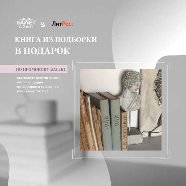 Узнаем новое каждый день! Вместе с командой ЛитРес мы приготовили для вас классный сюрприз: по промокоду BALLET вы можете получить одну книгу в подарок из подборки и скидку 15% на каталог ЛитРес! Как воспользоваться предложением? перейти по ссылке авторизироваться и ввести промокод BALLET получить подарок! Скидка действует 3 дня с момента активации, акция действительна до 31.12.2022. Желаем вам приятного чтения!