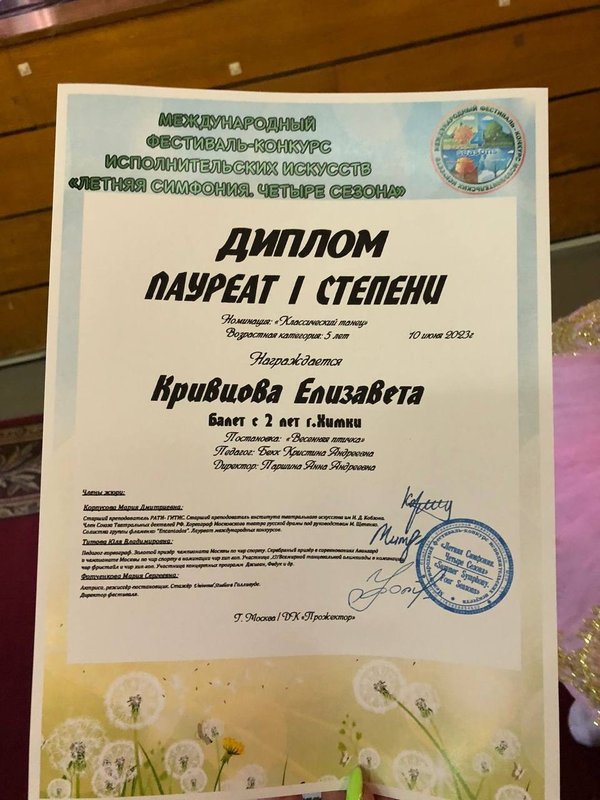 Спортсмены летом не дремлют! Международный фестиваль-конкурс «Летняя симфония. Четыре сезона» • Мамаева Варвара — Лебедь — Лауреат 1 степени • Кривцова Елизавета — Весенняя птичка — Лауреат 1 степени • Планета воды (Цыганова Яна, Остапенко Дарья, Стратович Марфа, Мамаева Варвара) — Лауреат 1 степени Поздравляем наших звездочек! Мы вами гордимся ️
